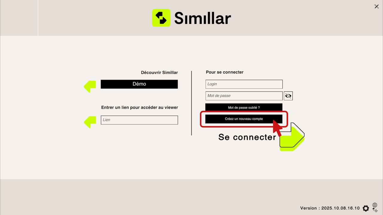 Once Simillar is open, you can create an account, or log in if you already have one.